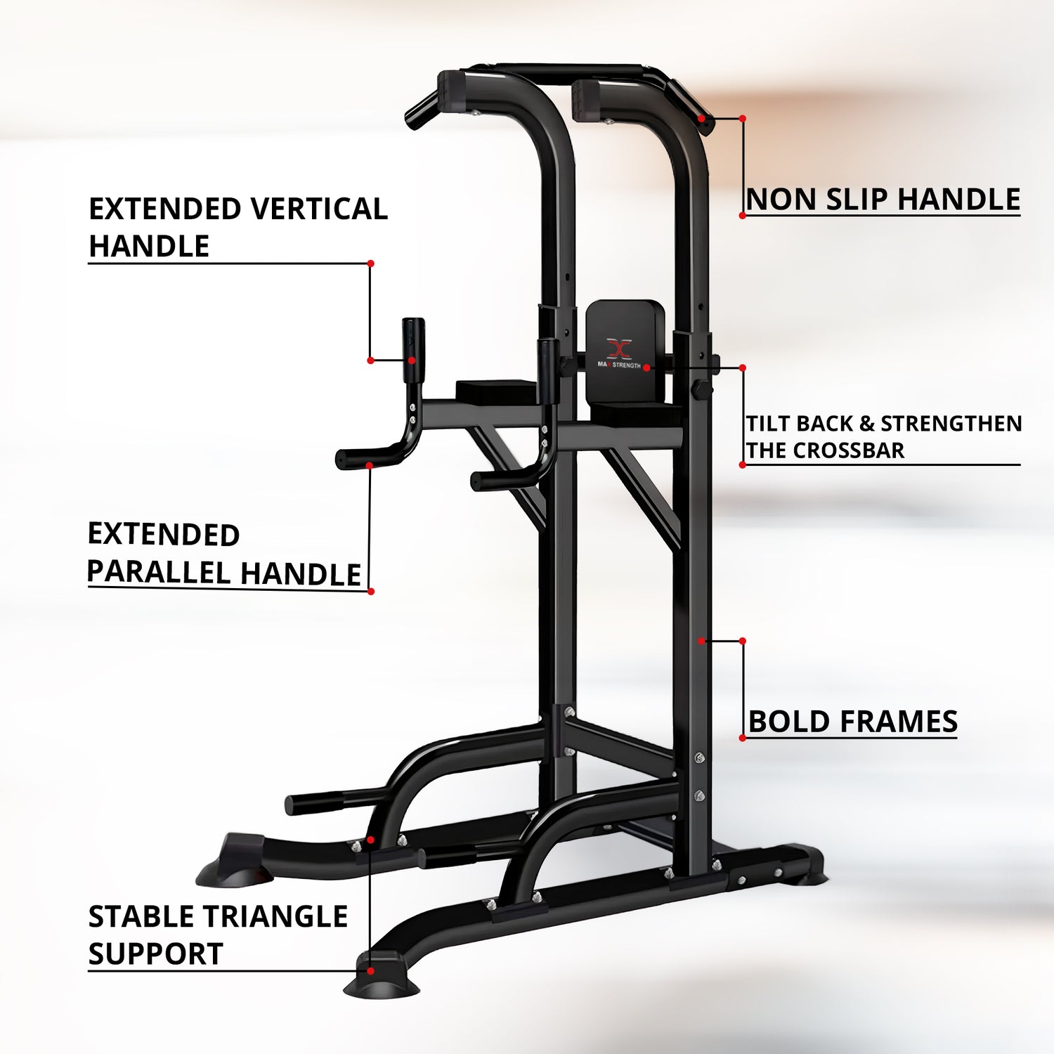 MAXSTRENGTH Pull Up Tower Dip Station Workout - Black is backordered and will ship as soon as it is back in stock.