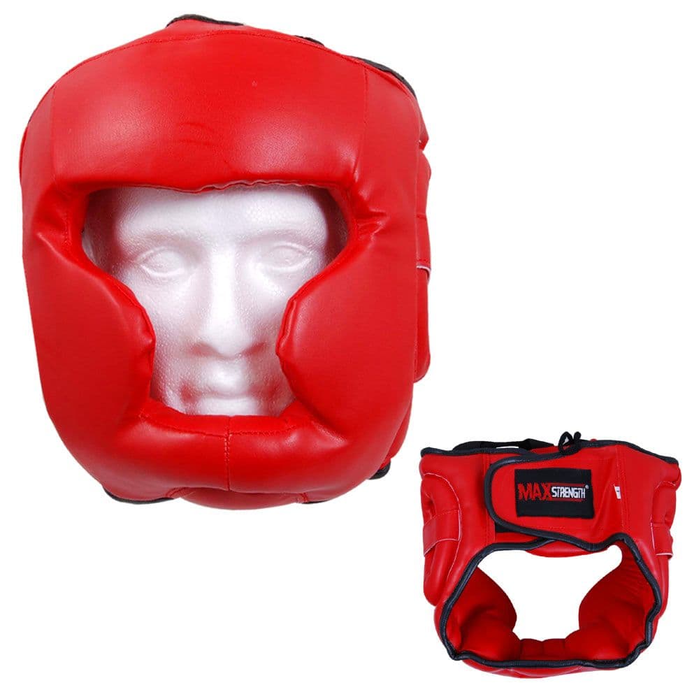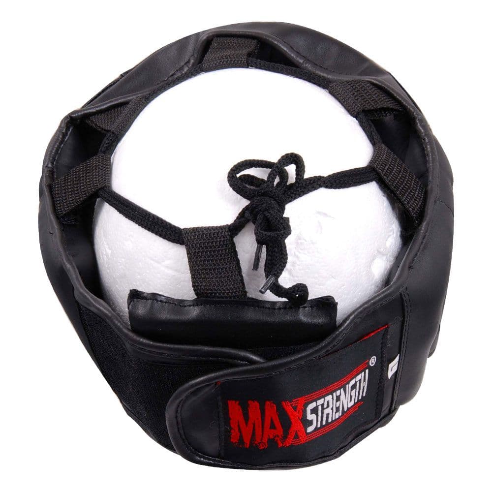 MAXSTRENGTH Heavy Duty Boxing Head Guards Made from High Quality and Durable Rex Leather, With Maximum Shock Absorption padding to provide all around protection. Padded Ear Drum to provide better protection and Wide Double Velcro at the back to provide more comfort with locking closure. Adjustable Locking system to provide more custom fit. Comes in Senior size for adults boxing and practice use.