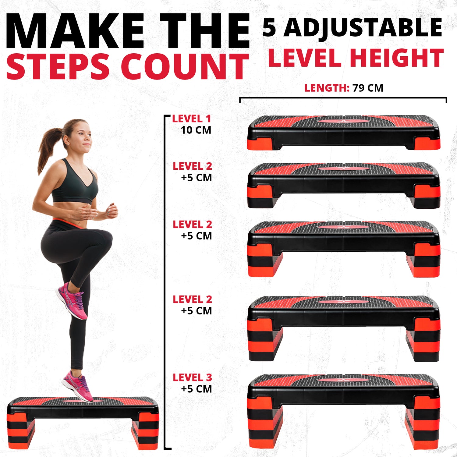 MAXSTRENGTH Adjustable Aerobic Stepper 5 Level Fitness Step (Red/Black)