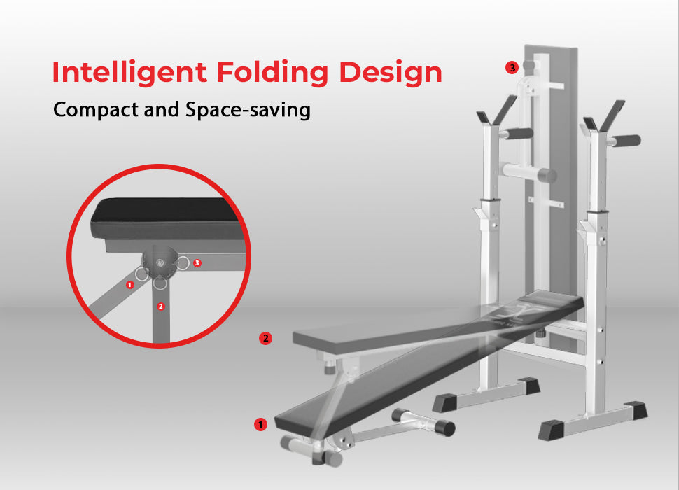 MAXSTRENGTH Adjustable Weight lifting sit up bench dumbbell flat can be folded into a compact size after use, then it can be easily moved to the desired place, or the stand-alone table can be placed upright in the corner. It is a truly multipurpose fitness accessory, designed to help you work out almost full body including legs and biceps. It surely is the best exercise bench for home gym you can ever ask for. Ideal for bench pressing, push ups, single arm Dumbbell Row, triceps dips, abdominal training and more. The perfect equipment to improve strength and fitness