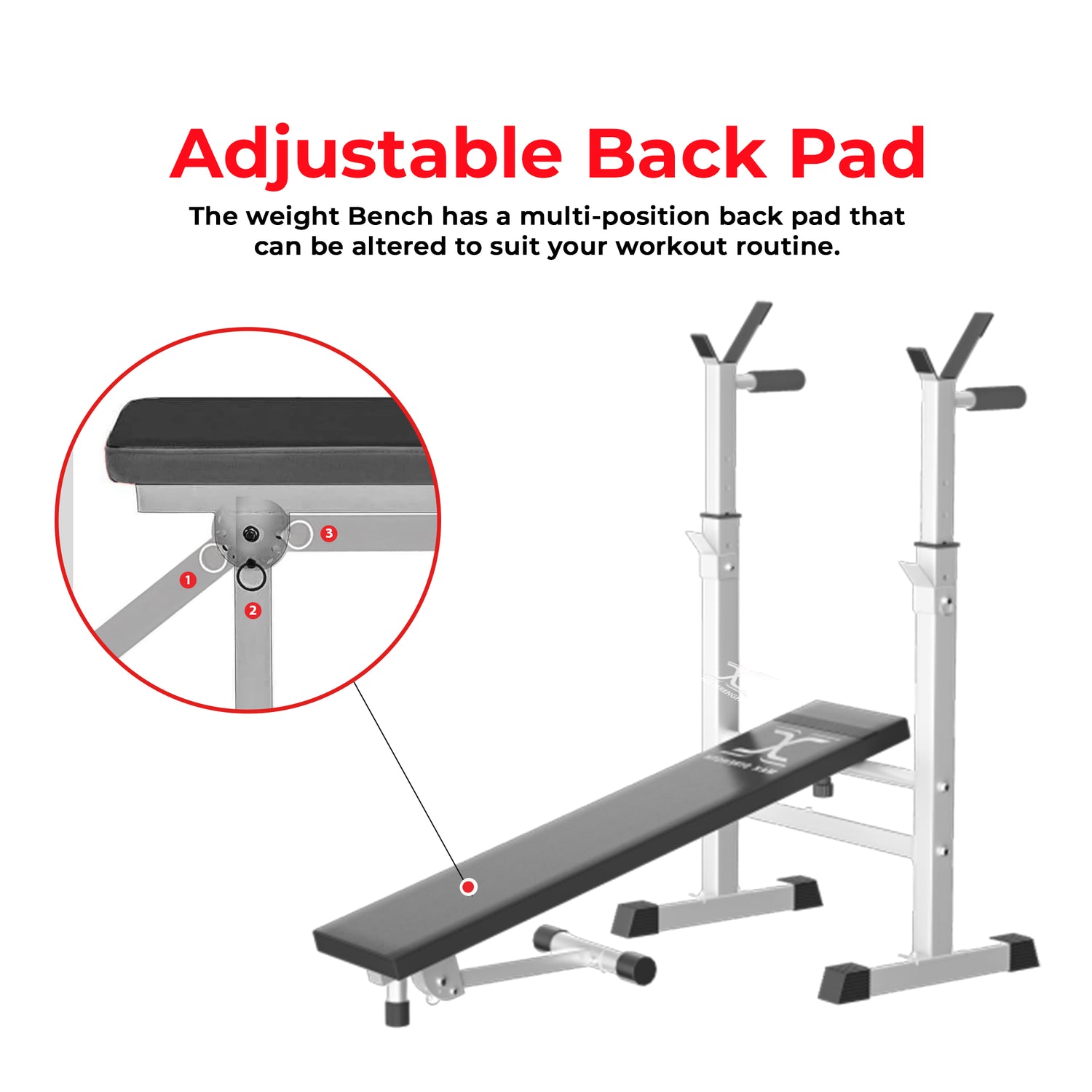 MAXSTRENGTH Adjustable Weight Bench Dip Station Barbell Rack/White