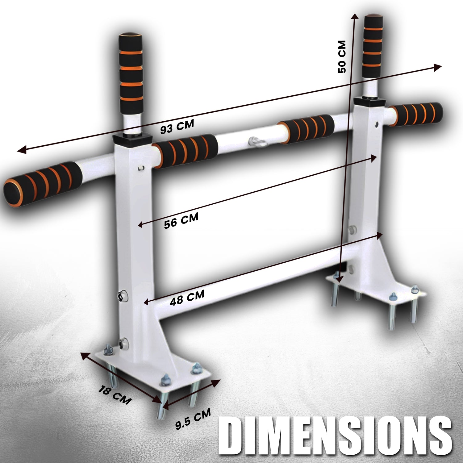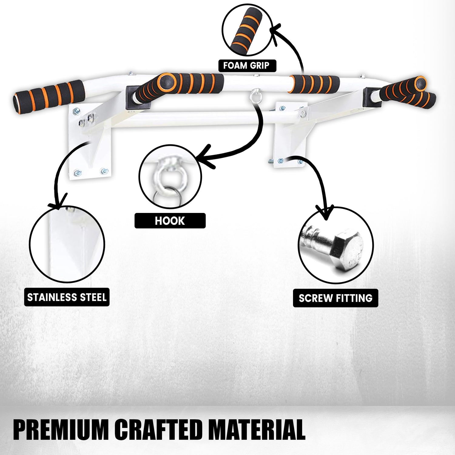service time. And it has a strong loading capacity, which can hold up to 120Kgs. In fact, this multifunctional wall mounted pull up bar offers you the versatility of total body workout (including upper body as well as lower body) with its 5 in 1 design.