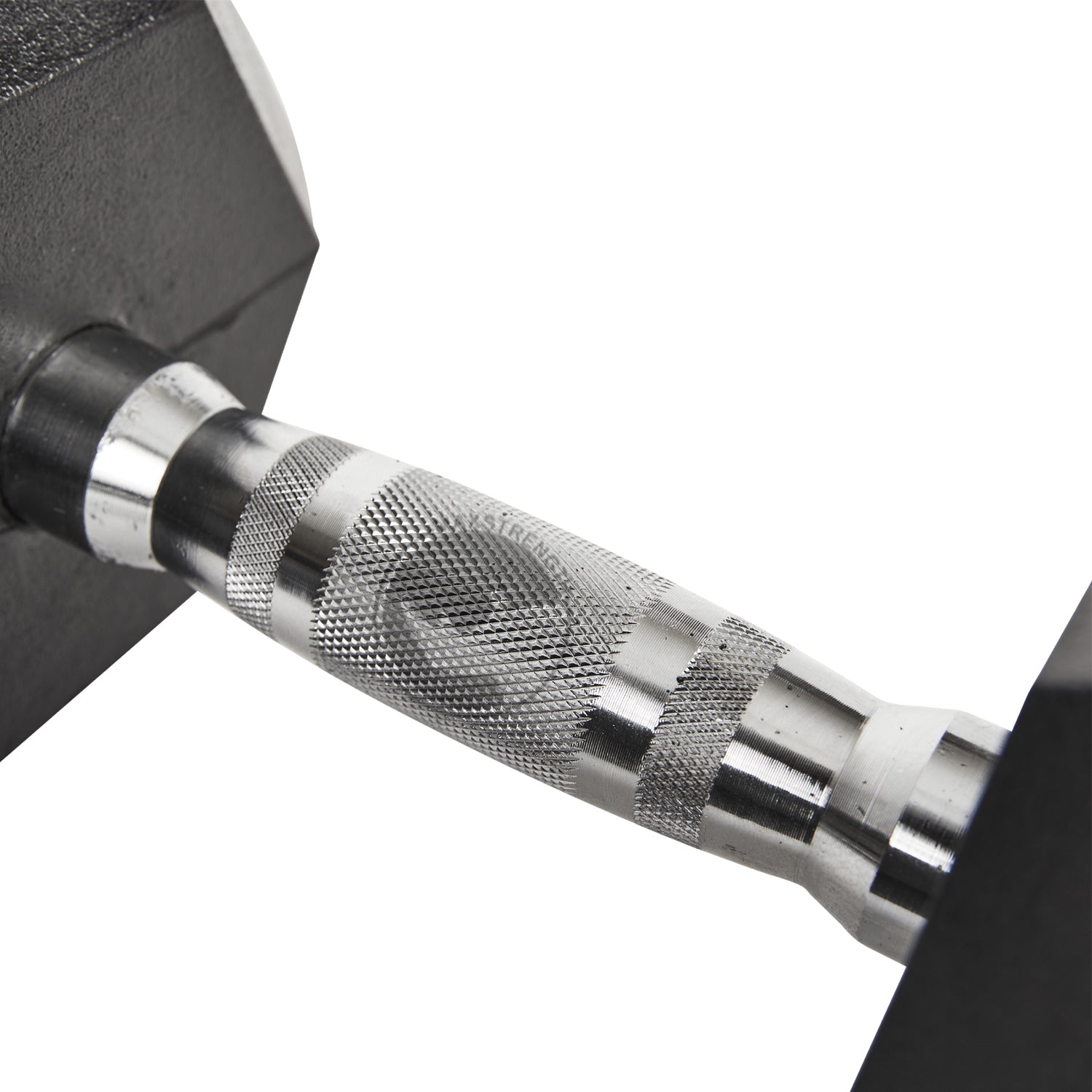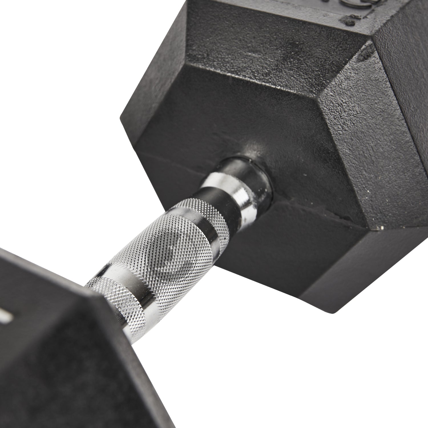 - Hexagon shape rubber encased heads help prevent rolling and provide easier storage