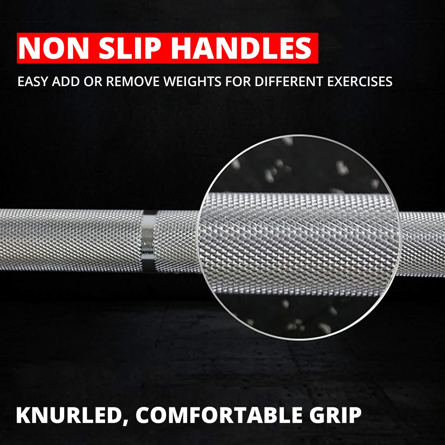 BEGINNER USERS – The bar itself has some weight so if you're just starting, you can begin with it and then add plates as you grow stronger. It features diamond-knurled hand grips to reduce slippage and maximise safety while rotating sleeves make lifting easier by reducing the friction.